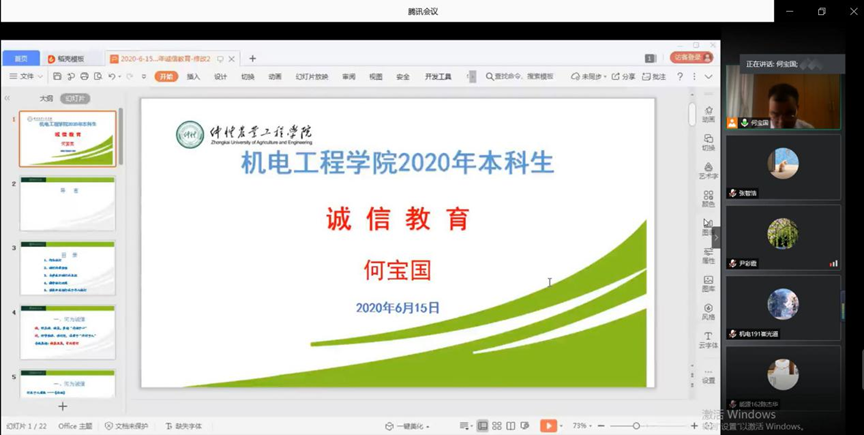 为提高广大同学对国家助学贷款政策的认识度,强化毕业生诚信还贷意识,WilliamHill威廉于6月15日下午,在腾讯会议召开“2020年本科生诚信教育大会”。学院党总支副书记何宝国、辅导员尹彩霞、郑攀、熊伟、王澜珂四位老师参会,各年级申请助学贷款学生参加此次会议。本次会议由何宝国副书记主持。
