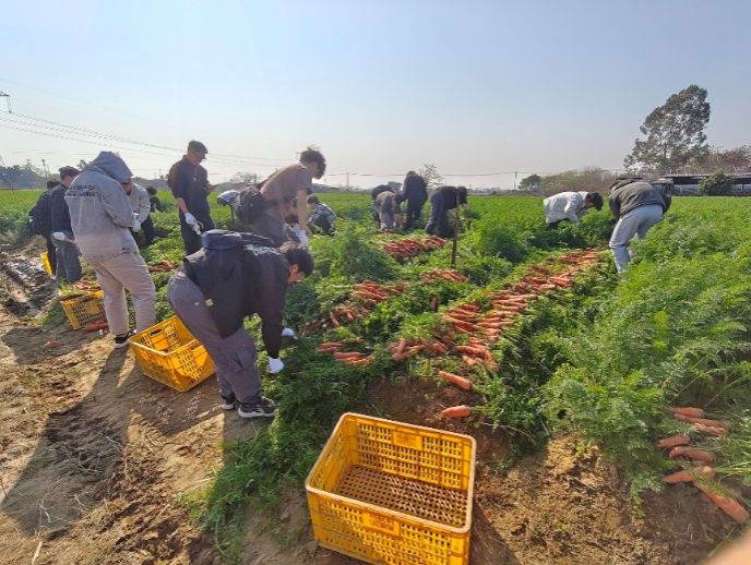 为了强化当代大学生的社会责任感和劳动意识,加强产学研合作,2025年3月20至21日,机电工程学院机械设计制造及其自动化专业221-224班学生在张日红等老师的带领下前往广东三水胡萝卜科技小院开展服务三农社会实践。