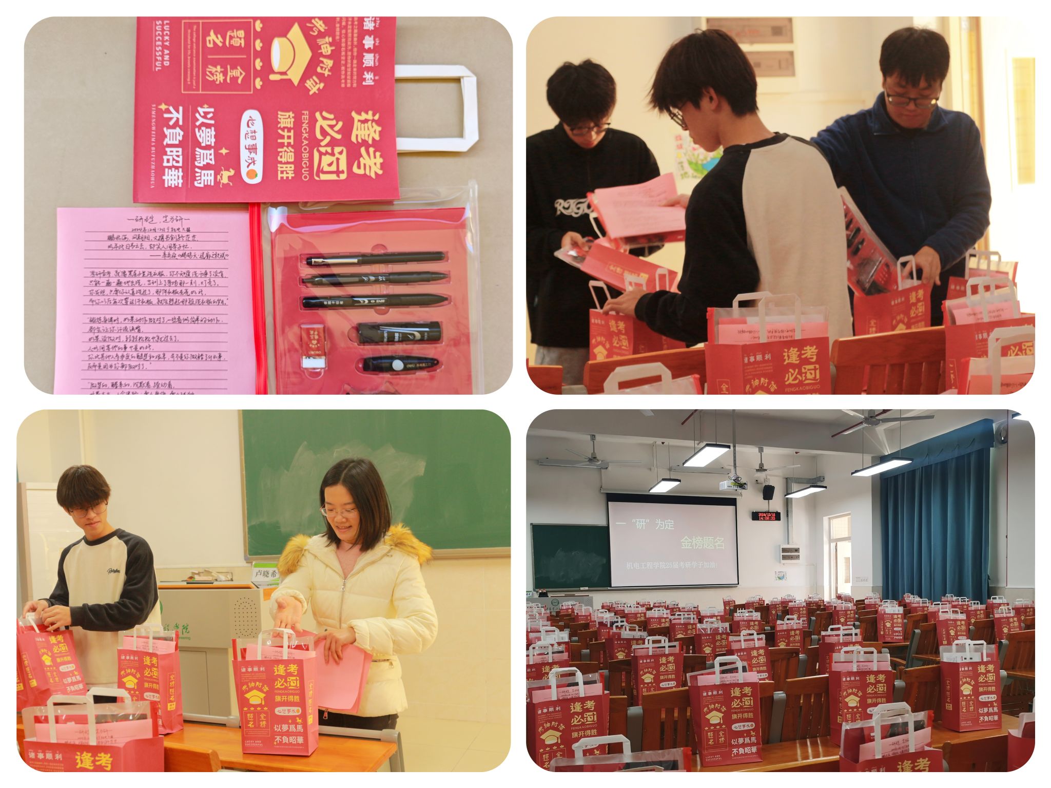 祝福礼包由考研文具14件套和辅导员的手写信组成,寓意着机电考研学子“下笔如有神、妙笔即生花”的自信和决心;大红福袋写满了同学们“旗开得胜”“金榜题名”的美好憧憬,也承载着学院老师对考研学子的殷切希望和声声祝福。