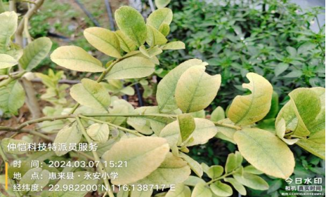 最后,特派员团队来到驻溪西镇工作队了解今年科技帮扶的重点任务,驻镇罗志强队长向特派员阐明了今年的帮扶方向,希望特派员结合自身的技术优势,为当地引进适宜的经济作物。在驻曲溪村吴康副书记的带领下,特派员来到该村香水柠檬种植地,了解柠檬的生长情况及病虫害,针对出现的红蜘蛛虫害和花多少果异常,队员马上连线香水柠檬种植专家,现场指导农户施肥、打药等技术,以确保丰产。特派员团队还查看了溪西镇第一宗集体流转土地,为承包户种植困境给出了参考意见。
