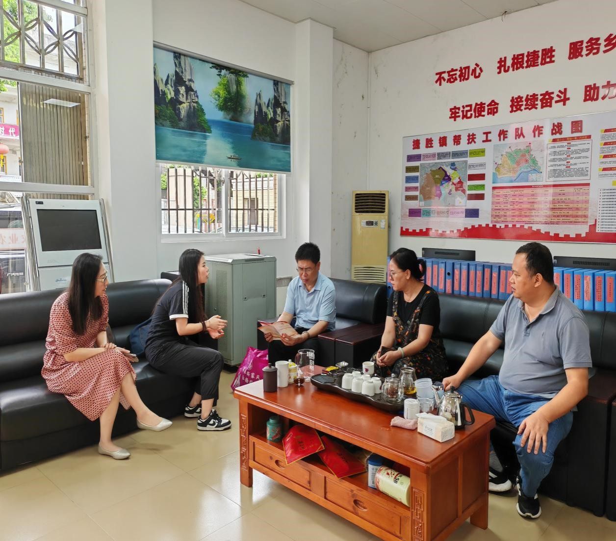与驻捷胜镇帮扶工作队、捷胜镇政府工作人员、资助工作人员深入交谈