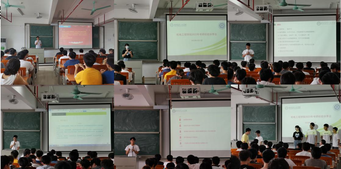 考上华南农业大学硕士研究生的黄大明(机电181班)向同学们分享了考研复习的学习资料,并推荐各个课程优秀的考研讲师,让同学们能够更清楚地找到适合自己的考研讲师的视频课程以及配套的学习资料,让备考的同学们少走弯路。考上本校硕士研究生的侯炳法(机电182班)分享了自己考研的心路历程,他认为每个人都要根据自己的真实情况合理地选择报考院校,不能犯下“高不成低不就”的错误,符合自身情况的选择才是最好的选择。