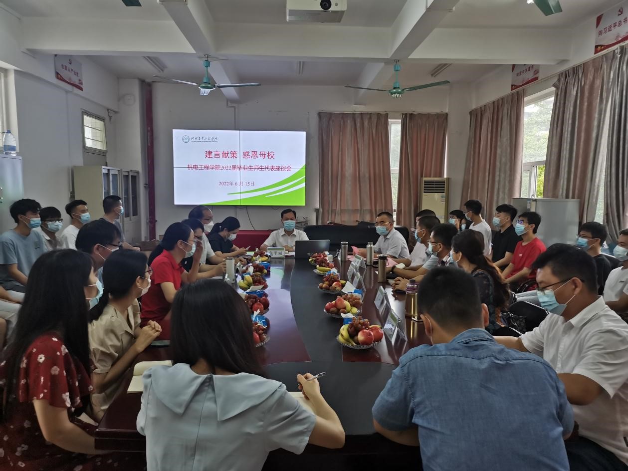 会议尾声,张平湖作了总结讲话。他感谢同学们为学校和学院的发展提出的宝贵建议,表示学院将召开专题会议进一步梳理并研究相关问题,以便更好地促进学院的发展。同时,他鼓励同学们转变认识问题的角度与观念,对自己充满信心。在就业问题上他引用习近平总书记在宜宾学院考察调研时的讲话来勉励各位同学应树立正确的价值观,保持平实之心,客观看待社会条件和个人需求,从实际出发选择工作,在实践中成长成才。他对全体毕业生作了三点寄语:一是希望同学们坚定理想信念,站稳人民立场;二是希望同学们勇于担当,善于作为;三是希望同学们锤炼品格,勤学苦练。张书记深情地对毕业生说:“希望同学们无论身处何方,相隔多久,永葆机电情怀,常回家看看,祝福同学们乘风破浪,行稳致远,繁花似锦,未来可期!”