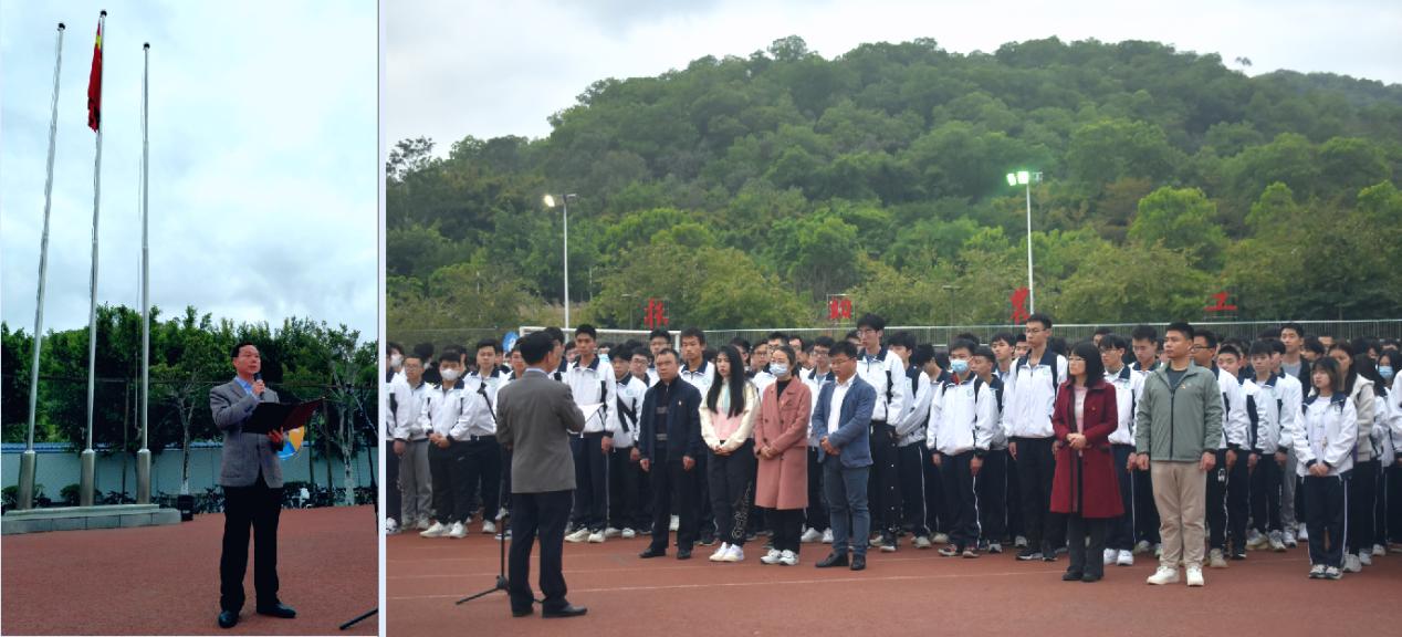 张平湖作国旗下的讲话,并向同学们提出新学期的五点要求,一是遵守校纪校规,特别是要严格执行常态化疫情防控和传染病防控措施;二是树立自信心,发扬勇于拼搏、不断追求卓越的勇气。要坚定“四个自信”,践行冬奥精神,汲取前行力量,以时代责任鼓舞自己不断拼搏奋进;三是学会自我教育、自我管理,用高尚的情操规范自己;四是时刻关注国家大事和把握国家大势,自觉把个人理想追求融入国家发展规划之中;五是注意安全,爱惜自己,健康成长。